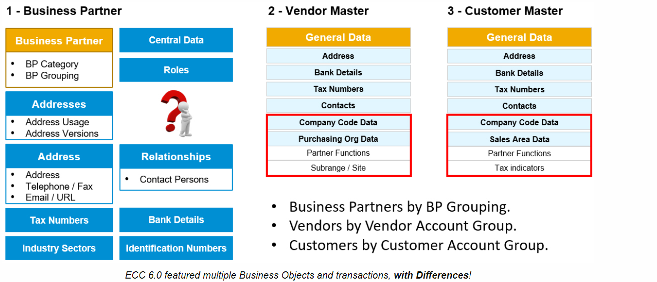 The first mistake that I made — on my first S/4HANA ERP implementation — was to continue thinking in terms of Customers and Vendors.Our project organized discussions and resources around Customers and Vendors, rationalizing that these were mainly separate legacy business objects, and certainly each had different business process concerns. What’s more, legacy Customers and Vendors had different stakeholders.